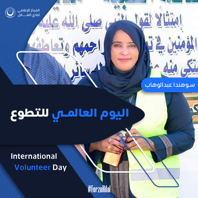 إنها وبكل فخر “سوهندا عبد الوهاب” التي نبعث لها بالتهنئة الحارة في يوم التطوع، ونشكرها على حسن صنيعها وما تقدمه للمجتمع السوداني.